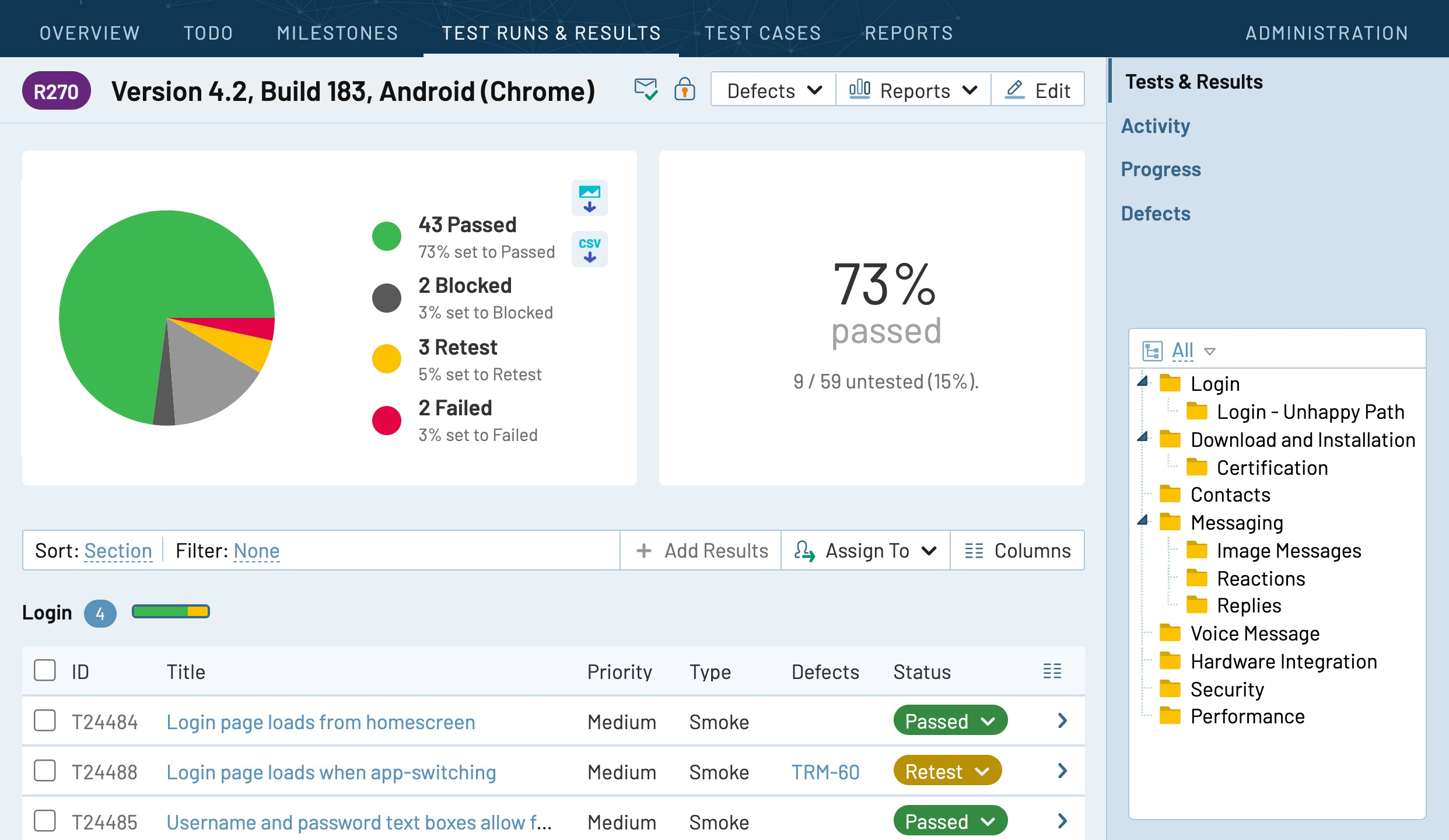 - 快速添加可重复使用的测试用例,创建灵活的测试计划,并跟踪测试执行进度