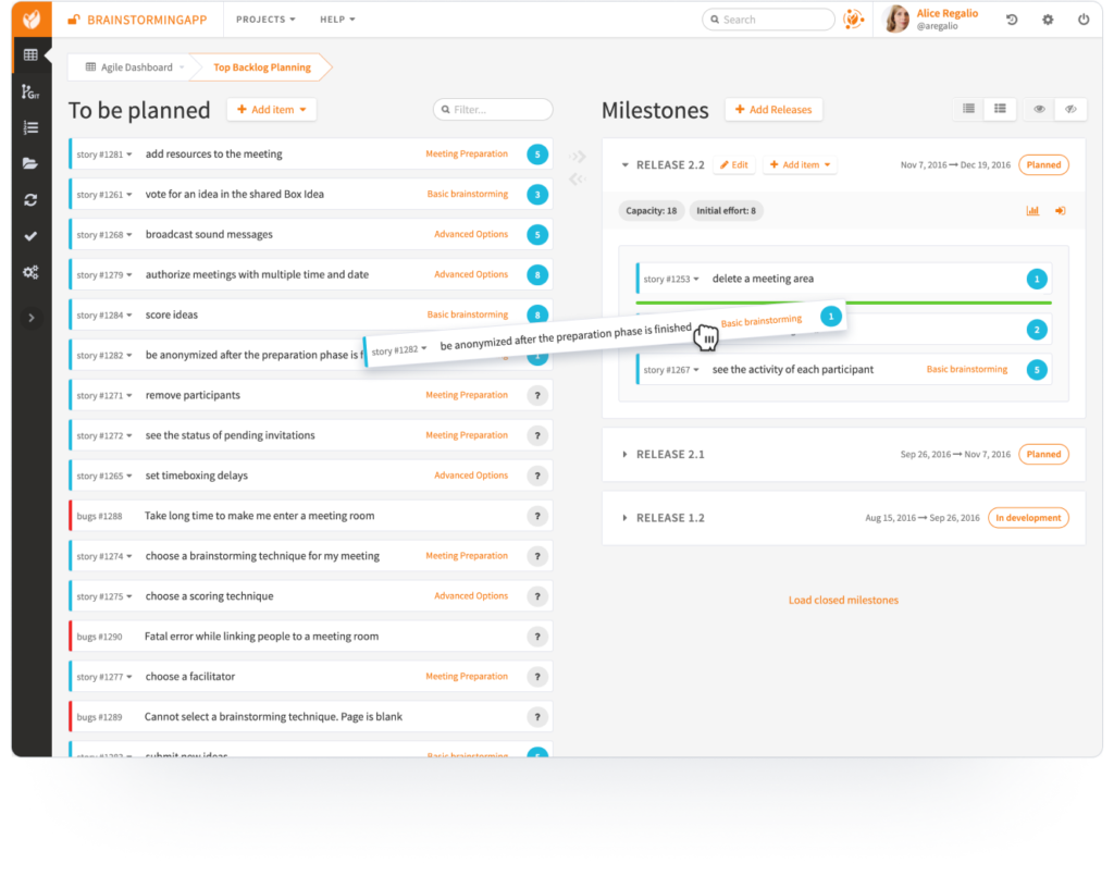 核心功能上,Tuleap 的 Agile Dashboard 提供 Cardwall(卡片墙/看板)与 Burndown(燃尽)等组件,用于可视化推进与进度监控;同时支持 backlog planner 等规划能力,更适合把敏捷过程“固化在工具里”。Tuleap 的界面与生态不一定像商业 SaaS 那么“顺滑”,需要更强的团队自驱。适合想要开源/可控,但又希望看板与 backlog 规划更体系化的团队。