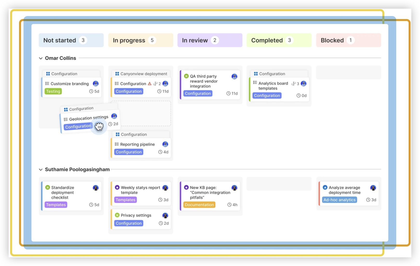 - 状态不超过 6 个:状态越多,越没人更新。我常用:收集→澄清→评审→已排期→进行中→已验收。