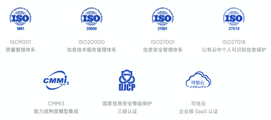 凭借规范的管理、优秀的产品质量及稳定的技术服务能力,ONES 已通过 CMMI 3级、可信云企业级 SaaS、ISO9001、ISO27001、ISO20000、ISO27018 等多项国内外权威认证。