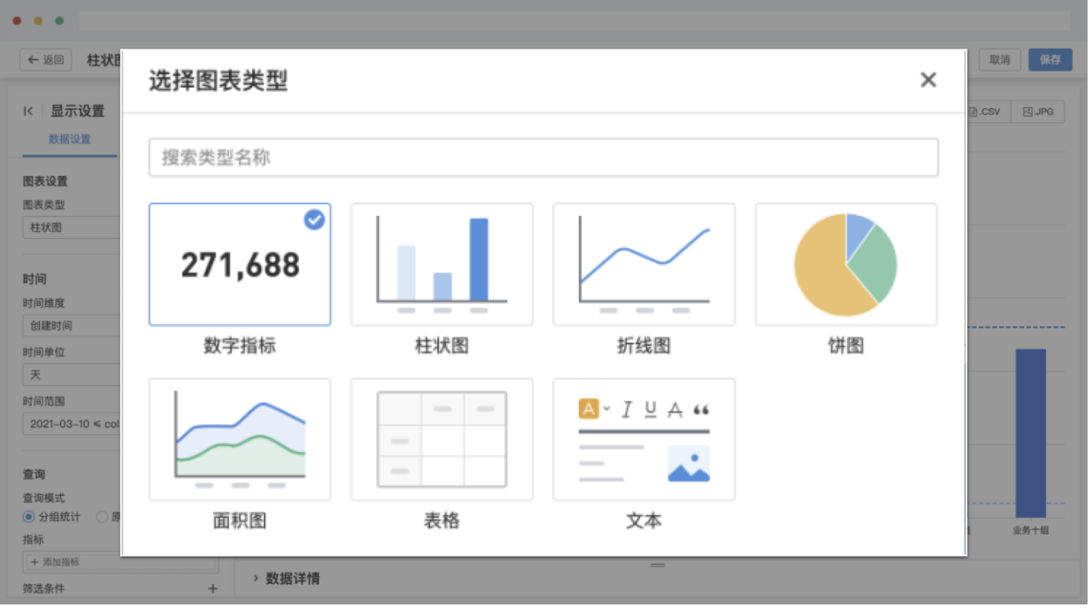 此外,为满足企业的个性化效能度量需求,ONES Performance 也支持设置自定义报表。通过自定义报表设计器,选择数据源、数据指标及图表类型,即可生成所需报表,并根据实际场景搭建仪表盘驾驶舱,实现多维度、精细化的分析。